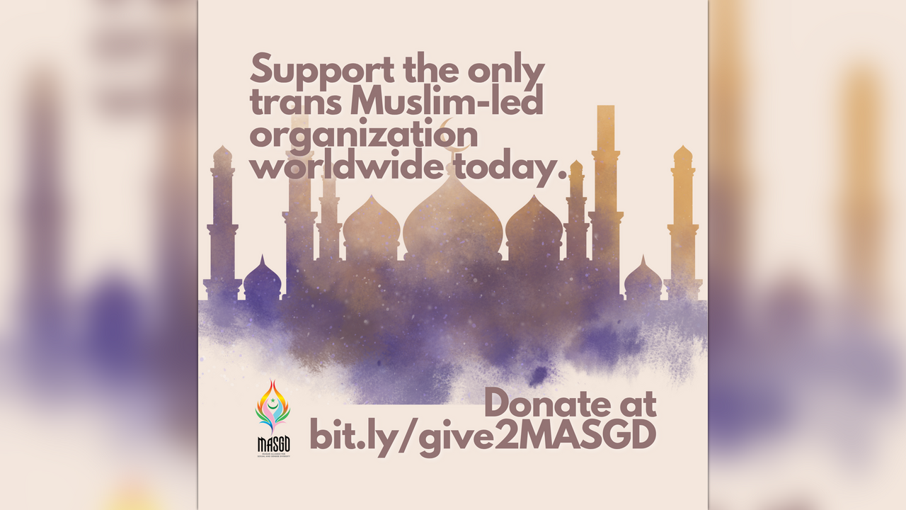 Muslim Alliance for Sexual and Gender DiversityMASGD is currently the only organization led by and for Trans Muslims. In the last two years MASGD has been led by Black, Palestinian, and Iranian leaders to continue our legacy in supporting the most marginalized of the most marginalized queer and trans racialized Muslims.
