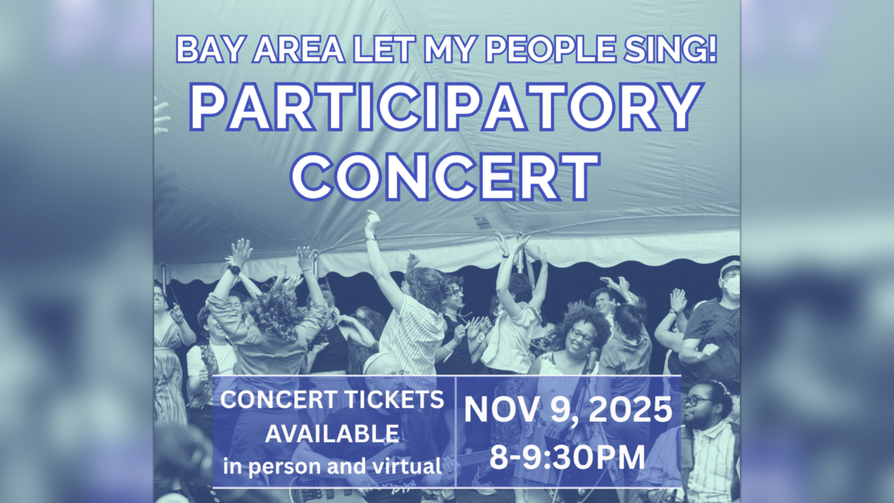 Join us virtually for the Let My People Sing! Bay Area Shabbaton's culminating participatory concert featuring program faculty Anat Halevy Hochberg, rabbi dr. koach baruch frazier, Batya Levine, Margot Seigle, featured teachers Eliana Light, Jessalynn Levine, and Rabbi Tsipora Gabai, and featured concert musicians Ilana Sherer, Katja Cooper, Candace Wase and Eva Orbuch.